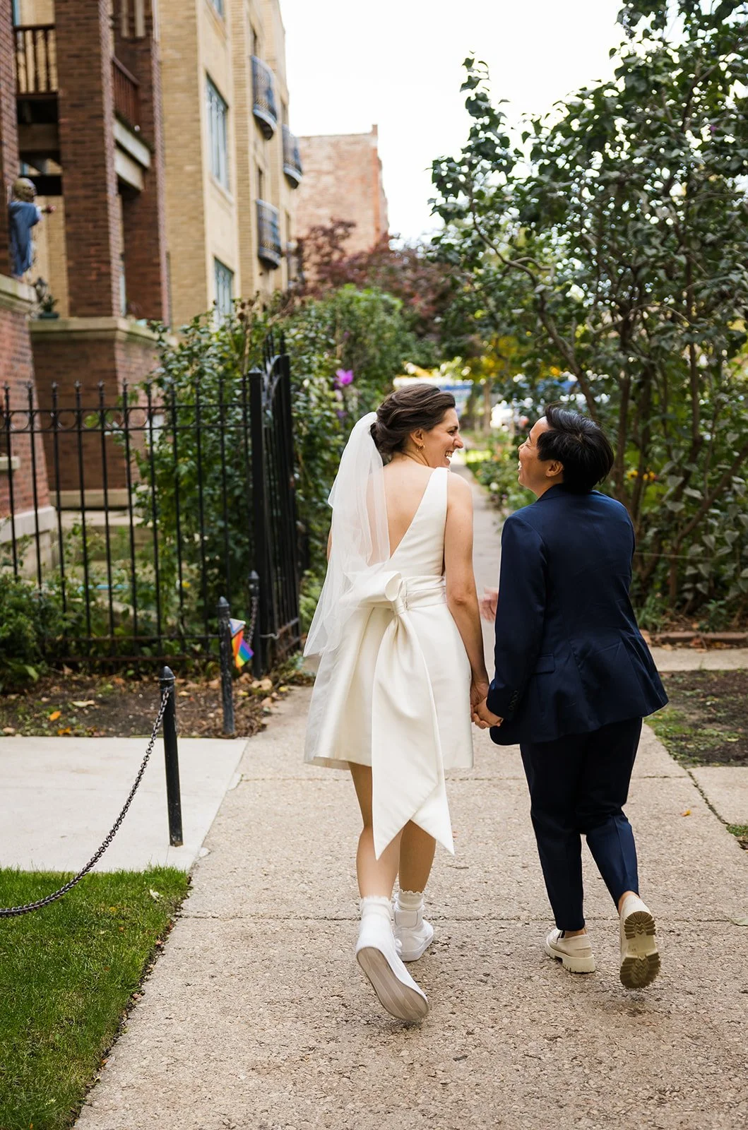 These two opted for a weekday elopement portrait session after they tied the knot at city hall that morning. It was such a joy to meet up with them at their Andersonville apartment where they were hanging with close friends and we went of from there!